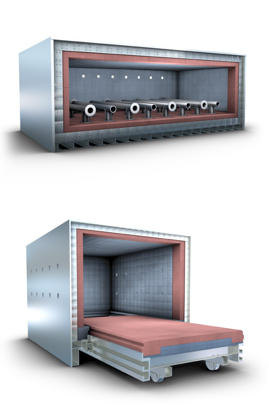 Herdwagenofen für die Wärmebehandlung müssen einerseits energieeffizient ausgeführt sein, und andererseits den mechanischen Ansprüchen im Wagenbereich gerecht werden.