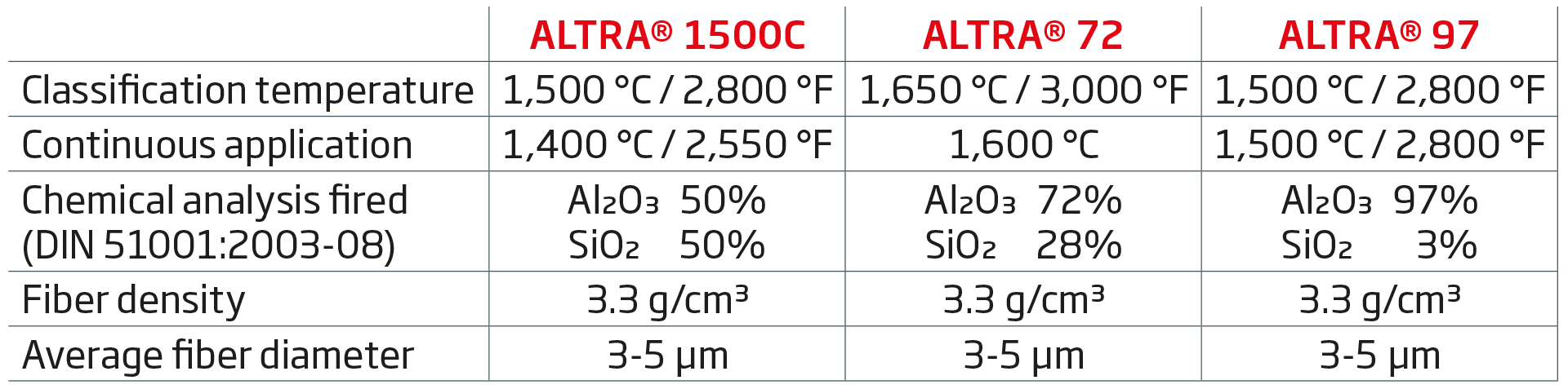 ALTRA® 1500C for MAXimum service life and highly efficient thermal insulation up to 2,800 °F (1,500 °C).