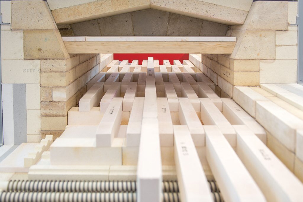 This type of furnace is lined with dense bricks or lightweight refractory bricks. There are also designs with fiber ceilings, but these are limited to applications with a maximum temperature of 1500°C.