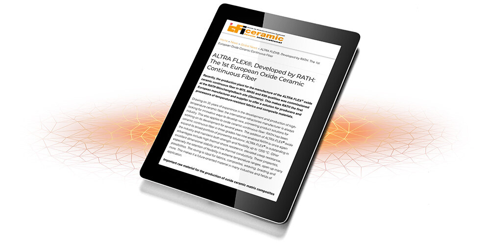 To date, RATH has developed the mullite fiber M75 (with an elevated creep resistance as well as a tensile strength of up to 1,500 MPa and an modulus of elasticity of 200 GPa), the mullite-corundum fiber MK85 (with a tensile strength of up to 1,900 MPa and a modulus of elasticity of 230 GPa) and the corundum fiber K99 (with a tensile strength of up to 2,500 MPa and a modulus of elasticity of 350 GPa). Initially, up to 10 tons of ALTRA FLEX® oxide ceramic continuous fiber are to be produced annually in the production plant in Mönchengladbach.