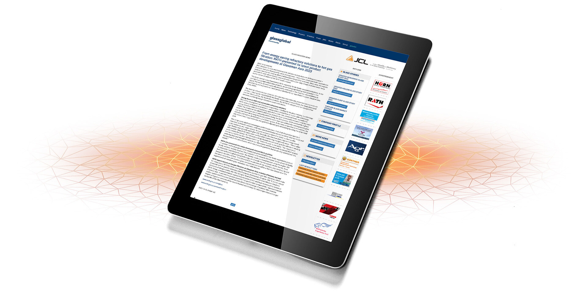 For many years, RATH has been developing innovative ceramic hot gas filter elements, which make it possible to filter particle-laden industrial flue gases at temperatures up to 1000 °C and to reduce emissions of nitrogen oxides. Manfred Salinger, Head of Advanced Ceramic Filtration Solutions RATH Group, presented a holistic approach to emission control and heat recovery at his lecture at Glassman Asia. In addition the proven expert for hot gas filtration compared the improved emission control system with the conventional solution, introduced the range of available filter element lengths and gave an overview of the lessons learned and the keys to reliable operation and longer service life of the filter elements.