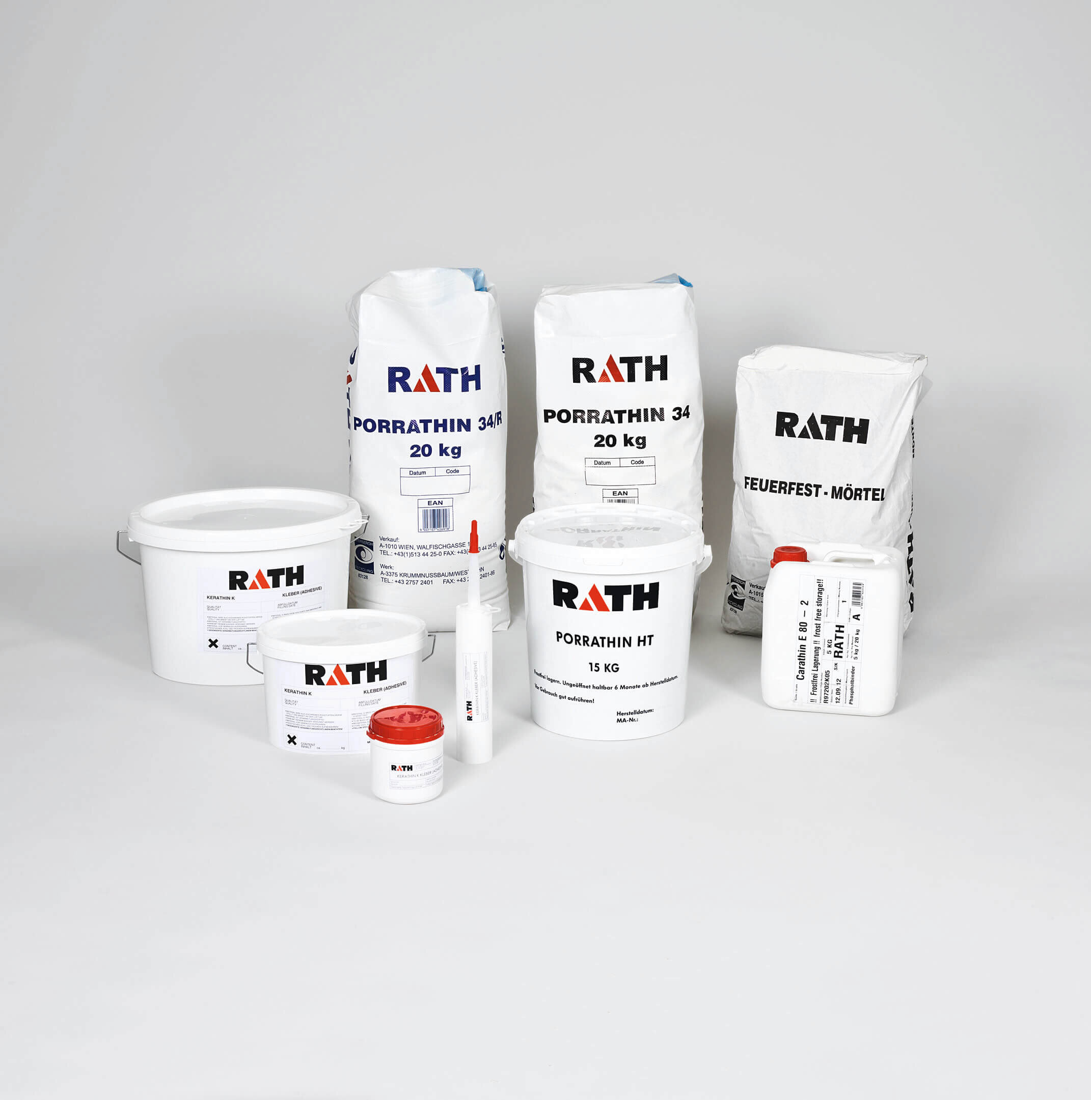 Porrathin wird meist verarbeitungsfertig ausgeliefert. Einzig die beiden Mörtel Porrathin 34 und Porrathin 34-R für die Hochtemperatur-Feuerleichtsteine werden trocken geliefert.